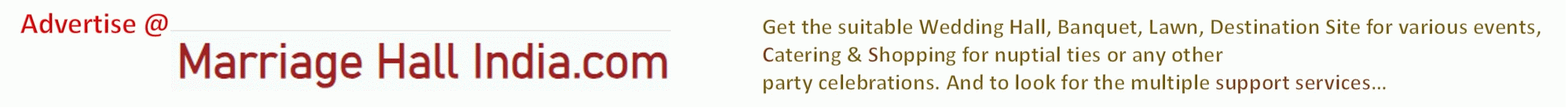 The marriagehallindia.com is an organised collection of advertisements of A to Z amenities that may be required to solemnize the function.